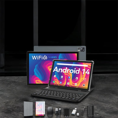 EITOMIN Android 14 Tablet 10 inch WiFi 6 Tablet with Octa-Core Processor 8GB RAM+64/512GB Storage13MP+8MP Camera/GMS Certification/Bluetooth 5.0Tablet with Keyboard/Case/Mouse/Stylus/Gray